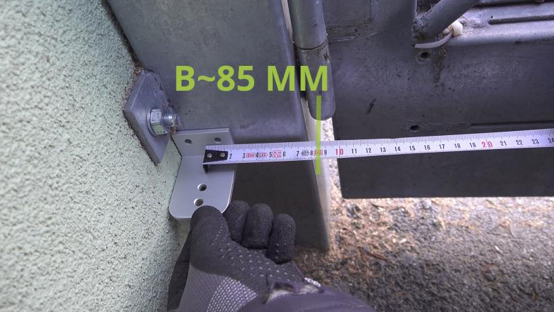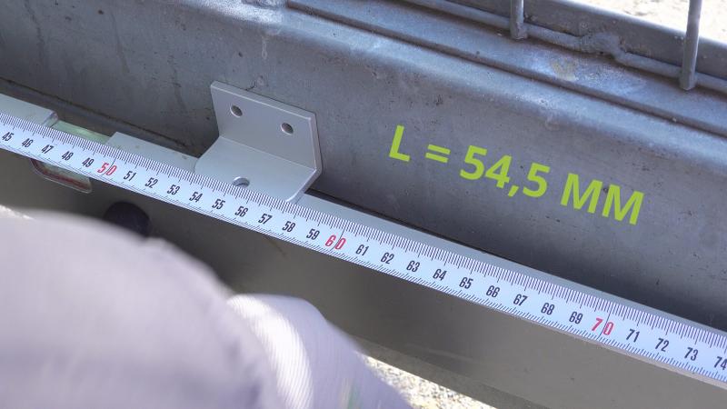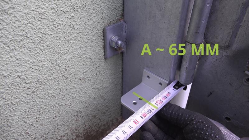 Après avoir défini la position de montage, on vérifie l'écart entre le point d'articulation du portail (le point central de la charnière) et le point d'articulation du ferme-portail (le trou de montage choisi sur l’équerre 1). Pour cela on a besoin de l'équerre la plus longue (équerre 1).