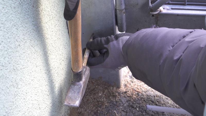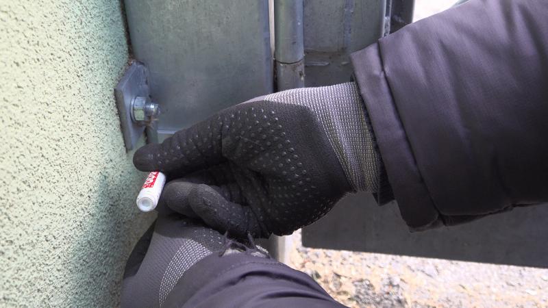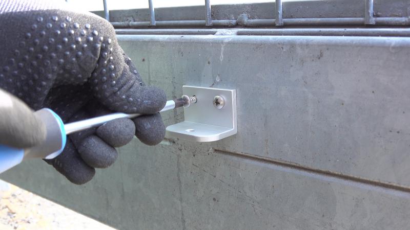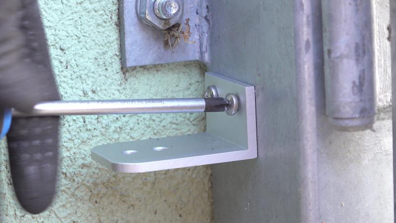 Une fois les trous percés, l'équerre est fixée avec les vis taraudeuses.